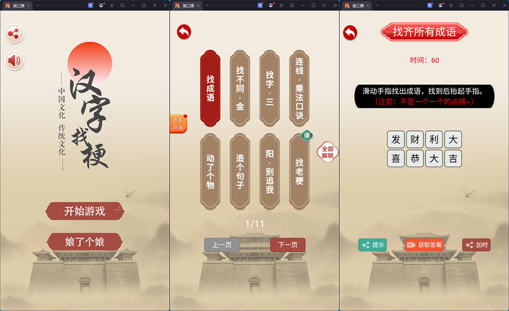 三网H5小游戏【汉字找茬找梗】最新整理CentOS手工服务端+源码+安卓